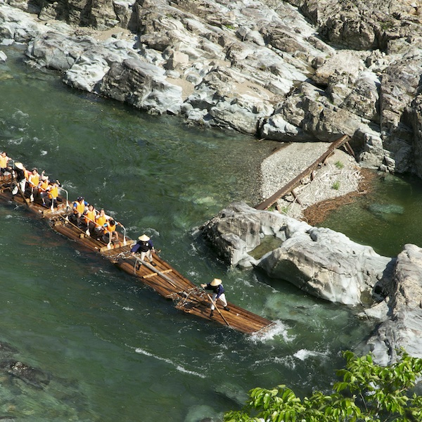 ラフティングや小舟での川下りは他の地域でも楽しめるが、丸太でつくった筏に乗れるのはおそらく日本ではここだけだろう。