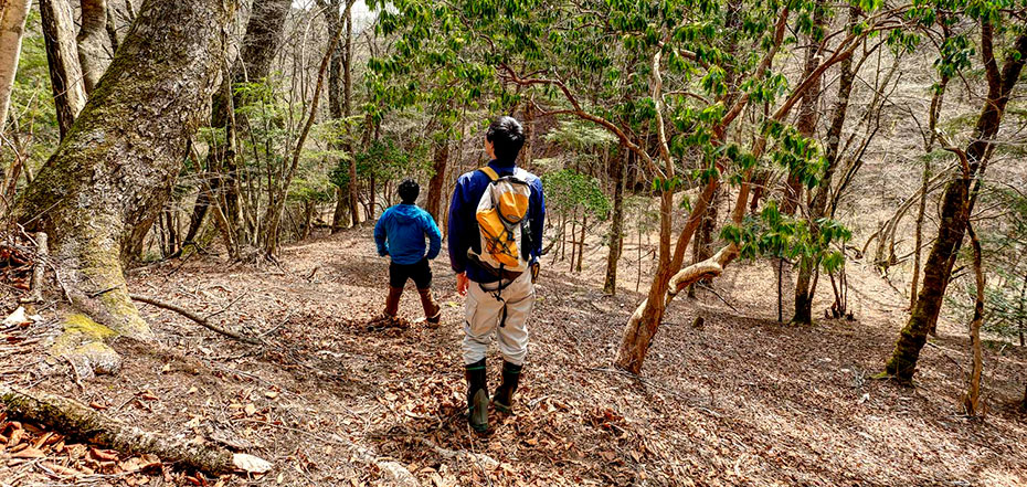 車に戻ると、朝から心配していた雨が降り始めた。こうして一雨ごとに暖かくなり、まもなくに「山笑う」のどかな春景色が広がるはず。そんな季節ごとに変わる景色を楽しみに、源流探検部はこれから毎月、多摩川の源流地域である小菅村を訪れる予定。源流地域の魅力とその源流部を守ることの大切さを広く知ってもらうために、さらにディープに源流部を探検していこうと思う。