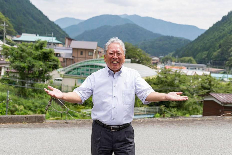 小菅村で生まれ育ち、小菅村役場職員として33年間勤務したのち、2012年に小菅村村長に就任した舩木村長。村長としてリーダーシップを発揮する傍ら、全国24の市町村で構成される「全国源流の郷協議会」の会長も務めている。