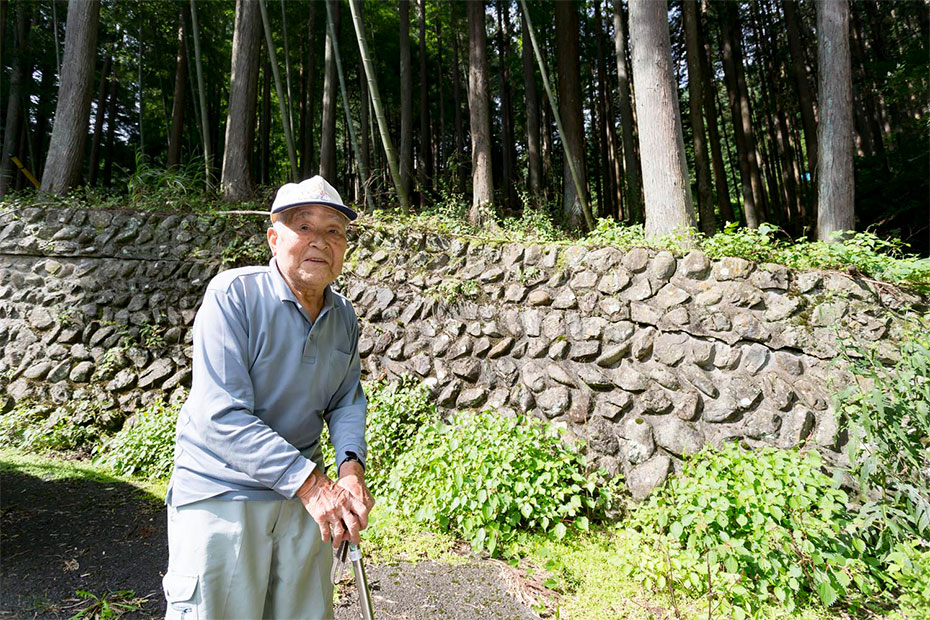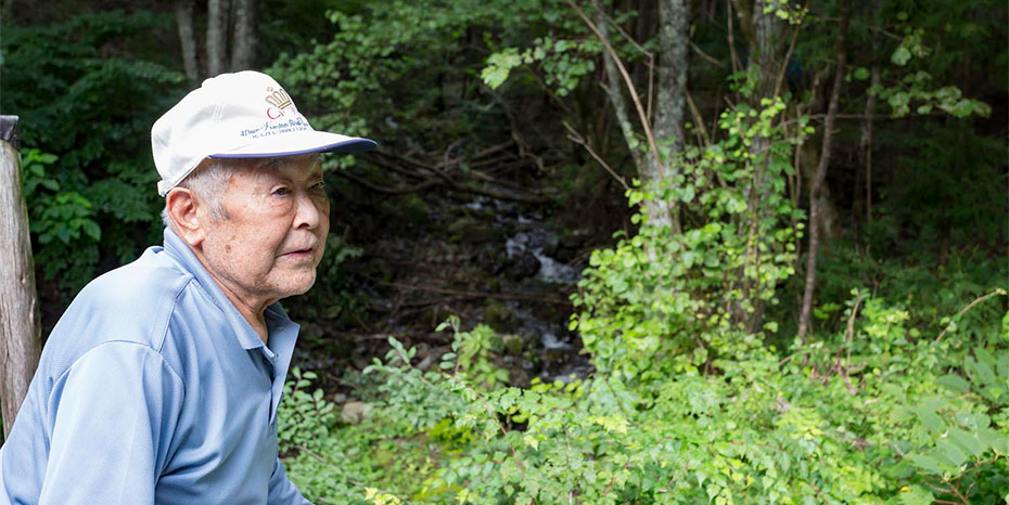 現在85歳の青柳一男さん。小菅村で生まれ育ち、83歳まで現役の猟師として活躍していた青柳さんは、このあたりの山や自然を知り尽くしている。