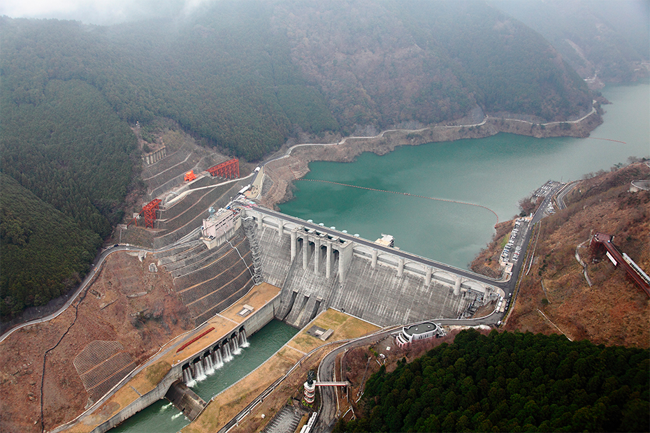 2013年(平成25年)に完成した大滝ダム。上水道用水、工業用水、水力発電、洪水対策といったさまざまな役割を担っている。