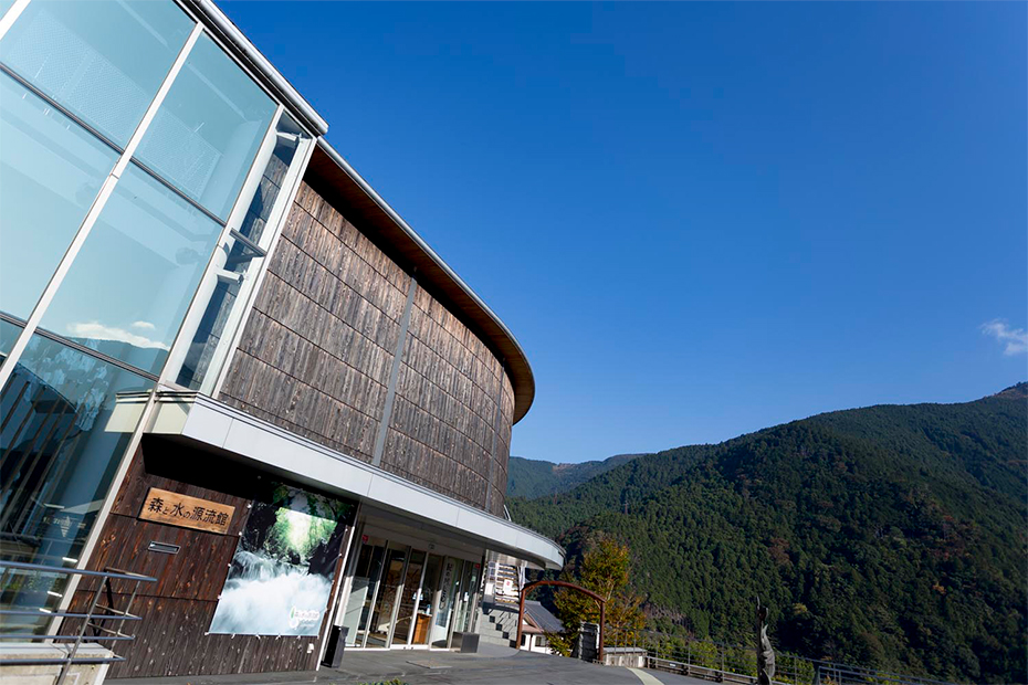川上宣言を具現化するための施設として誕生した、森と水の源流館。館内では吉野川・紀の川の自然や流域の生業や文化などについて学べる。