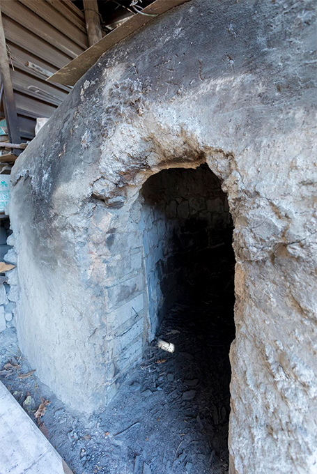 「昔焼いていたのは白炭だけど、これは黒炭を焼く窯。黒炭は火を起こしやすいから、今は黒炭しか作らないんだ」