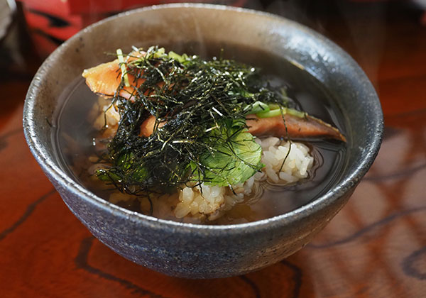 きっかわには、完全無添加の塩引きや、酒に浸さなくても味わえるソフトな酒びたしなど、さまざまな鮭製品が販売されている。寛永3年に米問屋として創業し、江戸時代末期には造り酒屋を営んできたが、昭和30年代、14代目の時代に村上の鮭料理が消えかけていることを感じ、平安時代より続くふるさとの鮭食文化を後世につなぐため、鮭製品を販売するに至ったという。今でこそ鮭の町として全国的に有名になった村上だが、その恵みを享受できるのは、先人の強い地元愛あってこそなのだ。きっかわは2017年に村上初の鮭料理専門店「井筒屋」を開業。100種類以上もあるという村上の鮭料理。そのなかでも選りすぐりのものを、季節ごとに楽しむことができるという。