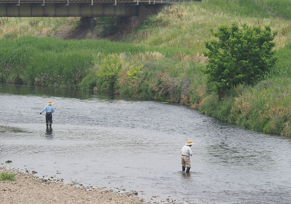 一方で、この都市近郊河川を「野生動物たちの生息地」として意識する人は、いったいどのぐらいいるのだろう。「釣りは自然に分け入る遊び」と言うが、私自身の経験では、自然を感じるよりも、釣りたい魚にしか目が行かないことのほうが多かった。だが、今ではこの一見不毛に見えるコンクリート護岸の都市近郊河川に息づく様々な鳥やケモノが、気になる存在になってしまった。身近で小さな「野生の王国」を知ることで(今のところ釣果には結びつく気配はないが)釣りをする時間は間違いなく豊かになった。動物たちの視線を借りて、木の少ない川辺に心もとなさを感じる。捕食者に怯える。そして時間をまたいで川の歴史を楽しむこともできる。