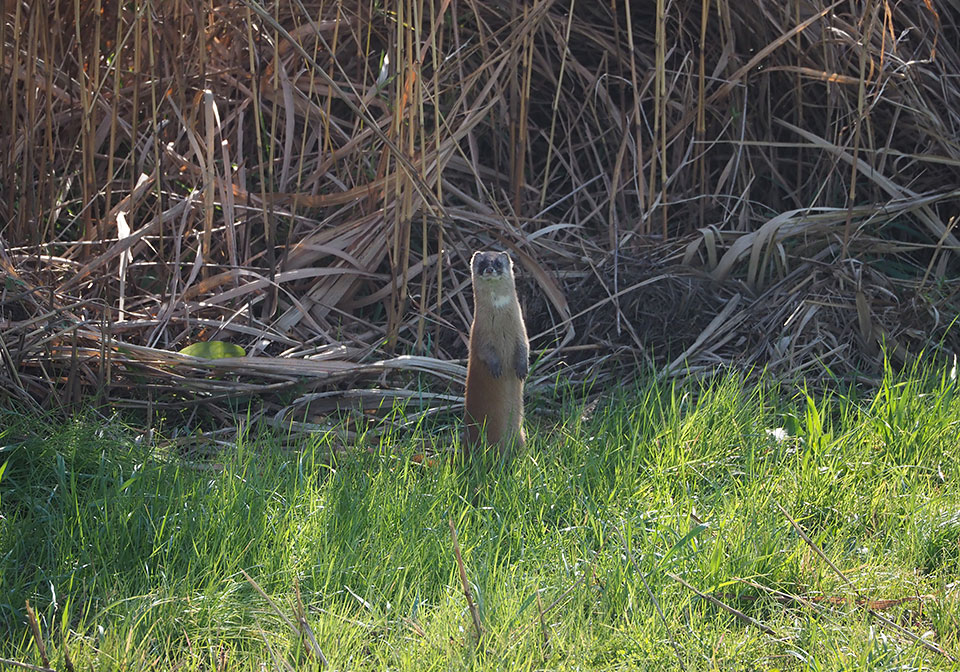 イノシシ騒動以来、私は川を歩く四足動物たちの足跡を気にするようになった。この川の水辺に多いのは、まずタヌキ。そしてイタチ。さらには小さな赤ん坊の手のひらを押したような足跡を残すアライグマ。コサギがオオタカに食べられた時(前編参照)も、一晩明けた翌日には食べ残されたコサギはいなくなっていて、代わりにタヌキとイタチの足跡が散らばっていた。イタチはこれまでに4回、日中に活動するのを観たことがある。タヌキは夜に一度、月明かりに照らされた川原を歩く姿を観たことがあるだけだ。
