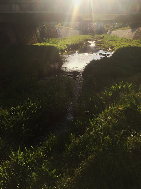 目の前を流れる川を歩きながら、時を超えて、はるか昔を想像する。縄文時代までさかのぼって定点カメラで現代までを早送りしたら、どんな風景が見られるのだろう。清浄な川と浅くて穏やかな海、そして湧水の森に囲まれて暮らしていた時代から、どのように人はこの川を切り拓いていったのだろう。森や海や川の自然に抱かれて暮らしていたはずが、逆にぐるりと人間の生活が自然を取り囲むようになったのは、いつ頃からだろう。