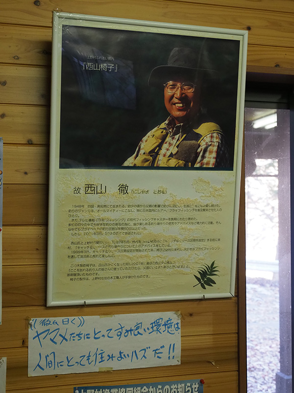 松元 はい。当時は「キャッチ&リリース」なんて言葉も知りませんでしたから、自分らの中では川の中に「再生産工場を作るか」という感じでした。魚が持っていかれなければ、残った魚が繁殖するのではないか、というイメージです。それならば自分たちが漁場を作って設定すればいいだけなので、やってみようかと。ダムの補償金の一部を割いて、新たな釣り人を呼び込むためにC&R区間を作ろうかなと、県に相談してみたんです。その時、どう漏れ伝わったのかはわからないのですが、そのことが西山徹さんの関係者の耳に入りまして……実際に開設前に二度ほど釣り場まで見に来ていただき、色々なアドバイスをいただきました。平成10年と開設した平成11年のことです。たしか平成13年にお亡くなりになられているかと思いますけれども、その少し前のことです。当時、テレビでもフィッシングキャスターとして著名な方でしたから、その方が「C&Rの需要は間違いなくあるので、そういう漁場を開設してくれれば本当にありがたい」とおっしゃってくださり「釣り人も待望していますので、ぜひともやってください」というお言葉をいただきました。これほどの全国を歩いてこられた方が言うのであれば間違いないだろうとお力添えをいただきました。自分たちにはまったく予備知識も何もなかったなかで、誠実に応対をしてくださり応援をしていただきました。同時期に里見栄正さん、佐藤成史さんも紹介していただき、皆さんにアドバイスをいただきながら始めることができました。当初、6㎞ぐらいは連続した区間が欲しいというアドバイスをいただいたんですけど、内部的な事情もあり結局は2㎞区間をふたつという形で始めました。