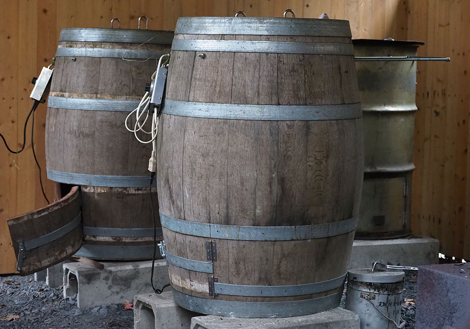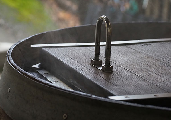 「親父はほとんどやらなかったんですが、私は釣りが好きなので、魚を釣ってはよく燻製を作っていたんです。いわばその延長ですね(笑)。当初はドラム缶を用いて8時間ほどかけて燻していたのですが、どうしても熱にムラがあるので、もう少し温度を安定させることができないか……と思っていた矢先にワイン樽をいただけることになりまして、それを自分で加工して活用するようになってからは6時間の燻製で仕上げることができるようになりました」