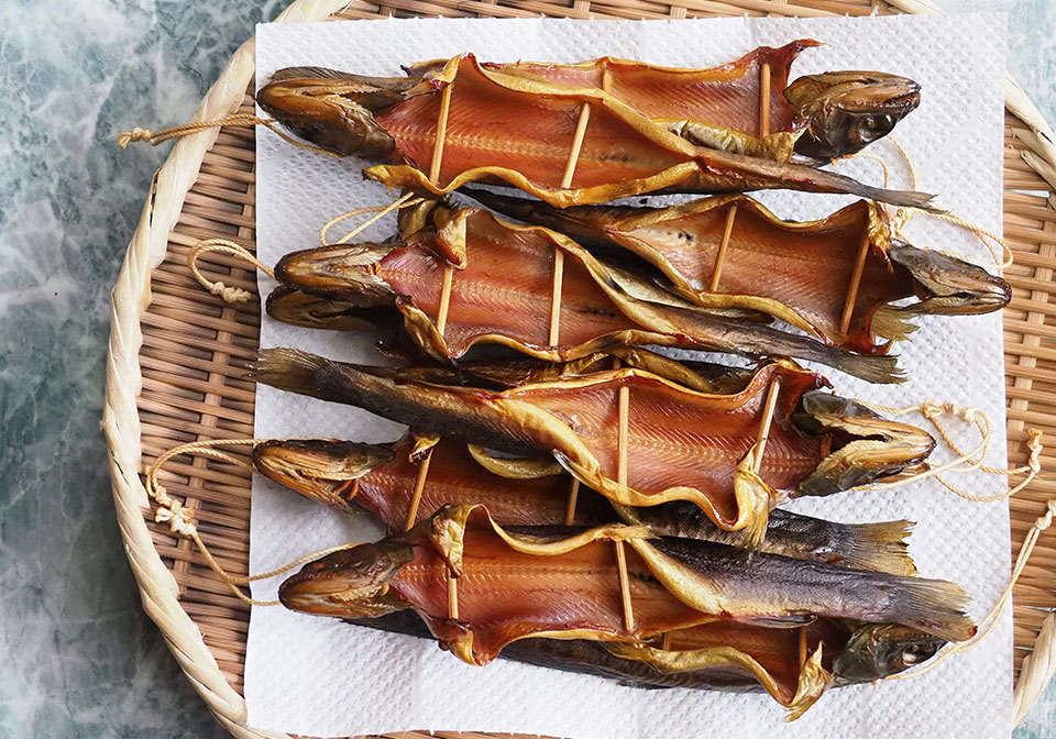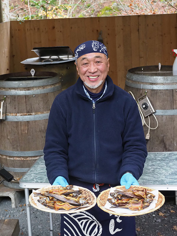 探究心旺盛の真一さんが作る燻製はとても美味しい。だが、今もまだ追求の途上なのだという。そんなこだわりの味が人づてに評判となり、ほとんど燻製目的で釣りにくるお客さんもいるのだとか。季節限定の販売なので、事前に確認をお願いしたい。