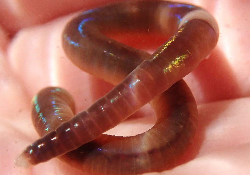 美しい……。ミミズに抱くにしては、なかなかおよびもつかない第一印象を抱いた私は、カメラのレンズ越しに、しばらく見入ってしまった。