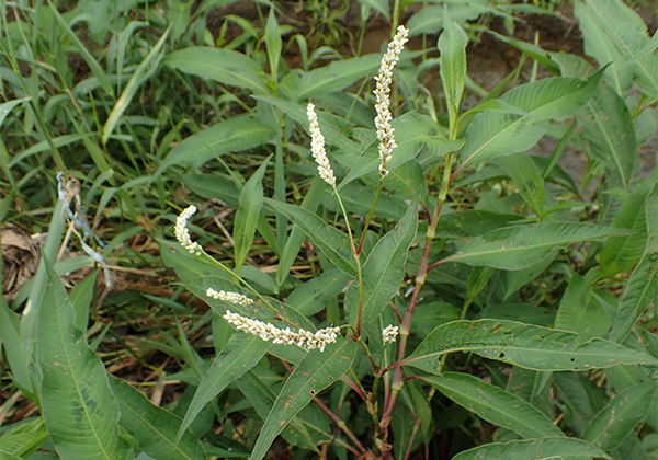 ヤナギタデは「蓼食う虫も好き好き」という諺で知られる川辺の蓼で、葉をかむとピリリと舌を刺すような辛みがある。諺は「こんな辛い葉を好んで食べるモノ好きな虫もいるものだ」……という着想から生まれたようだが、一方でこのヤナギタデの葉をすりつぶして酢で溶いた「蓼酢」はアユの塩焼きの薬味として好まれてきたという話もある。身近な川の草だ。