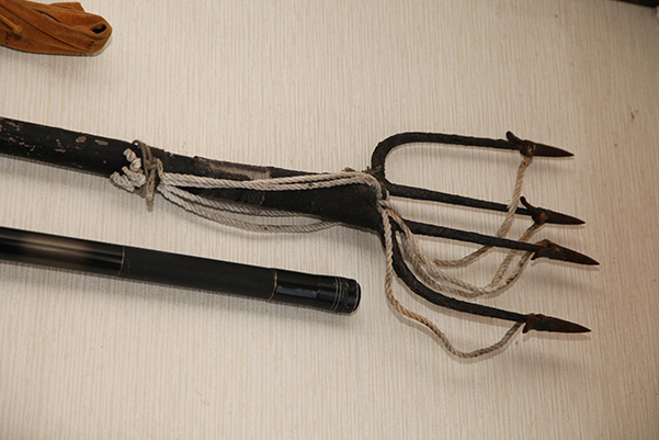 孵化場の見学の後、平方組合長のご自宅でコド漁についての話を伺った。先にも書いたが大川のコド漁は、江戸時代以前から綿々と受け継がれてきた現在ではこの川だけに残る古の漁だ。元々は「コド」と呼ばれる四角い箱状の罠を組んで、そこに産卵遡上中のサケをおびき寄せることからコド漁と呼ばれた。現在では少しずつ簡略化され、多くは竹や笹を沈めて作られた「モッカリ」と呼ばれるものや、「オトリ」と呼ばれるサケをひもでつないだ仕かけも含め、全体の総称としてコド漁と呼ばれているようだ。