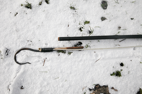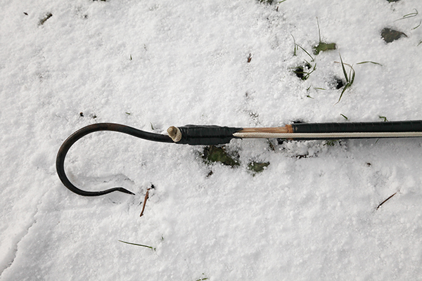 いずれにしても、注目すべきは全国的に川サケ漁の主流であるウライやテシなどの「一括採捕」ではないところ。罠を組むといってもそれは岸際の一部に設ける構造物のことであり、そこを通らなければサケはそのまま上流へと遡上することができる。また、コドにサケをおびき寄せても大きな釣り針状のカギで引っかけなくては、サケは獲れない。「コドでおびき寄せて」「カギで引っかける」という二つが組み合わさって初めてサケを獲ることができるのだ。