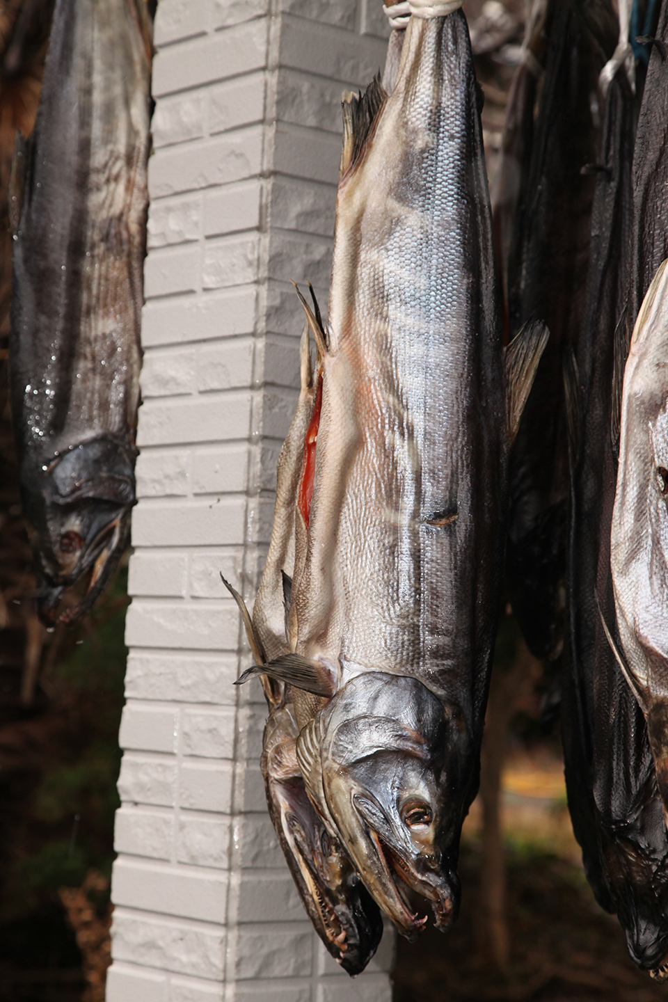 組合長はずらりと30尾ほど吊るされた中から小ぶりな一匹を選ぶと「ハイ」と私に手渡してくれた。「大きいのはもう少し干さねばならないから。これならちょうどいいですよ」と。思わぬいただきものに感謝を告げて、その場を後にする。手作りの塩引き。大変なご馳走が車の後部座席に横たわっていると思うだけで、漁期がほとんど終わってしまっていた憂いも吹き飛んでいた。