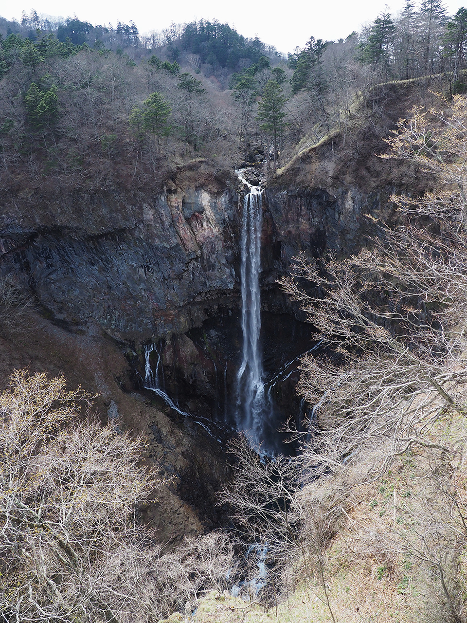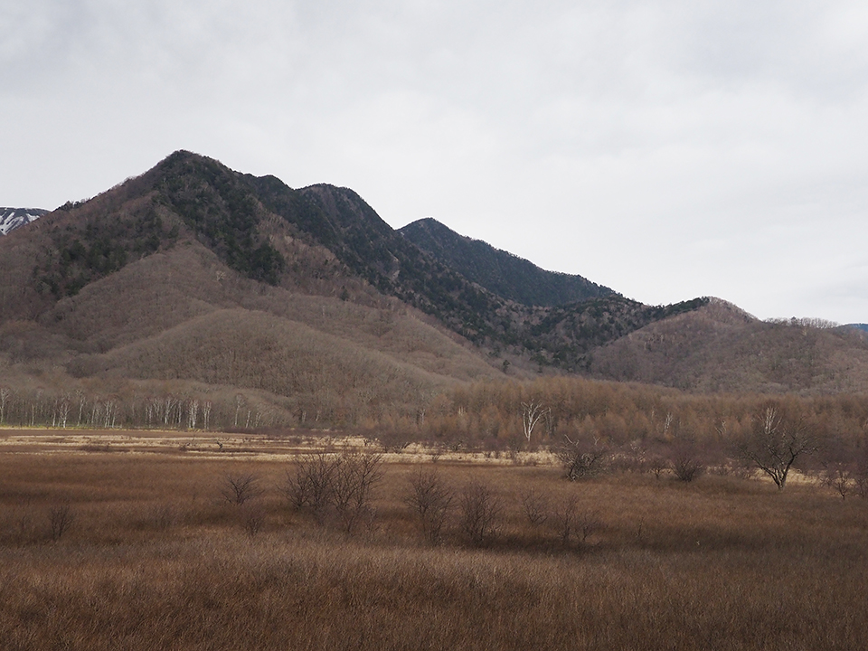 赤沼車庫に車を停め、戦場ケ原の西側にある小田代ケ原までは未舗装の散策路を歩く。湿地を流れるスプリングクリークの湯川をまたぎ、ミヤコザサの林床に今にも動きだしそうな古い倒木を見ながら進む。ここにくるといつも、小さな鳥の声がわかれば面白いのにな、と思う。わかるのはいつもカケスばかりだ。小田代ケ原からは低公害バスの行き交う舗装道を歩く。勾配を上ると、この道路で最も標高の高い弓張峠だ。それを境に湿原から森へと景色が変わり、季節を数週間巻き戻したような感覚に襲われる。どことなく薄暗く感じるのは、山あいの谷を進むことになるためだ。徐々に舗装道の脇の川筋が見えはじめるが、まだ水はない。進むにつれて枯れ沢に少しずつ水が現われ、それがつながりひとつの川となる。