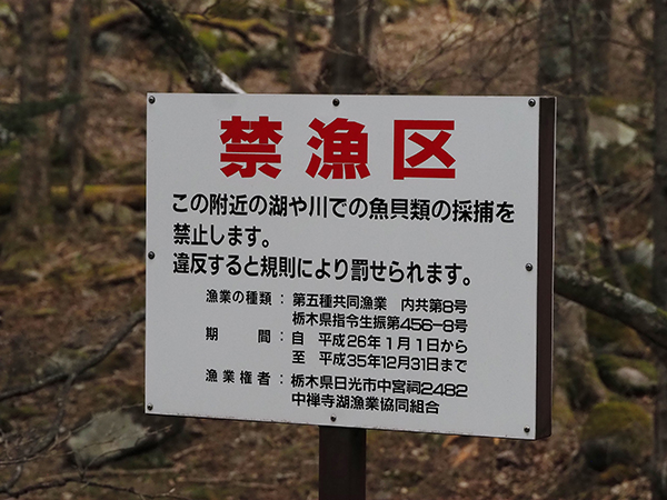 中禅寺湖をはじめとする華厳の滝よりも上流の川や湖には、元々魚が棲んでいなかったと言われている。つまり、中禅寺湖やそこに注ぐ湯川、さらにその上の湯ノ湖に現在生息する魚たちのすべてが、放流魚もしくはその子孫である、というわけだ。奥日光は山岳信仰の聖地であったことから、中禅寺湖に魚を放流することは禁じられていたが、1873年(明治6年)に200匹のイワナを放流したことを皮切りに多魚種の放流が行われるようになった。コイやフナ、ウナギやドジョウ、ワカサギなどなど。そして釣りや食品として有用であるサケ科魚類の移入も次々と試みられてきた。定着はしなかったがホワイトフィッシュやサケ(シロザケ)も移入されている。いわゆる外来種には、海外から持ち込まれた「国外外来種」と、国内のある地域から元々いなかった地域に持ち込まれた「国内外来種」がいるが、中禅寺湖や湯川、湯ノ湖について言えば、そのすべてが「国外外来種」もしくは「国内外来種」、というわけだ。