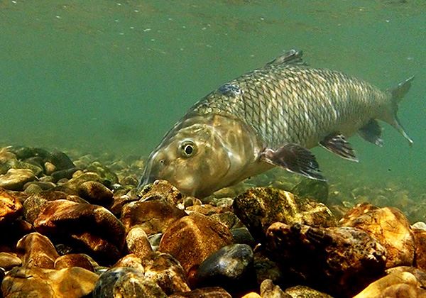 ニゴイの産卵行動は、オイカワにも似ている。オイカワのオスは長く伸びた尻ビレが特徴となるが、これは産卵行動をみると納得の形態で、ペアとなるオスは川底に伏せたメスに尻ビレで包むように覆いかぶさることで、受精成功率を上げているのだろう。ニゴイの場合、オスの尻ビレは長くないが、その代わりに長い体をメスの体に寄り添わせることで、卵が流失しないように受け止めているようにも思える。余談だが、海外の魚ではグレイリングという背ビレが帆のように長い魚が、ニゴイやオイカワと似たような放卵・放精の瞬間の形をとっていて、とても興味深い。オイカワ・オスの長い尻ビレとグレイリング・オスの長い背ビレは似たような役割を持っているようにも見える。