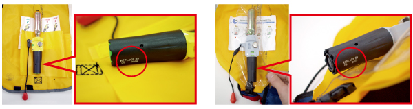 弊社製品の膨張式救命胴衣2モデルにおいて、2011年2月以降に生産されました一部のロットに、落水時に浮力を有するよう膨張させる機能部品である水感知センサー(以下、カートリッジ)のネジが緩み、容易に抜けてしまう不具合が発生することが判明した、との報告が製造元である高階救命器具株式会社よりございました。