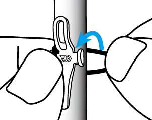 ホルダーの片側へゴムリングを掛け、ロッドに回して引っ張りもう片側へ掛けて固定する。