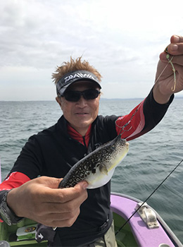 関東では各エリアでおこなわれているショウサイフグだが、東京湾では浅場の湾内ということで、10号前後とより軽い錘でのカットウ仕掛けと食わせ仕掛けで狙っているため、一般のカットウフグの釣り方は別と考えた方が良い。ほぼ周年、出船しているが時期によってはヒガンフグがメインターゲットになることもある。