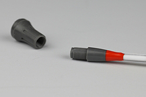 元上節(竿をしまった時に中に入る、元竿のすぐ上の節)の下にはガイドを配した下栓が付いており、さらに元竿の下栓に施した糸ガミ防止機構と合わせて、竿収納時の糸の傷付きを防止。
