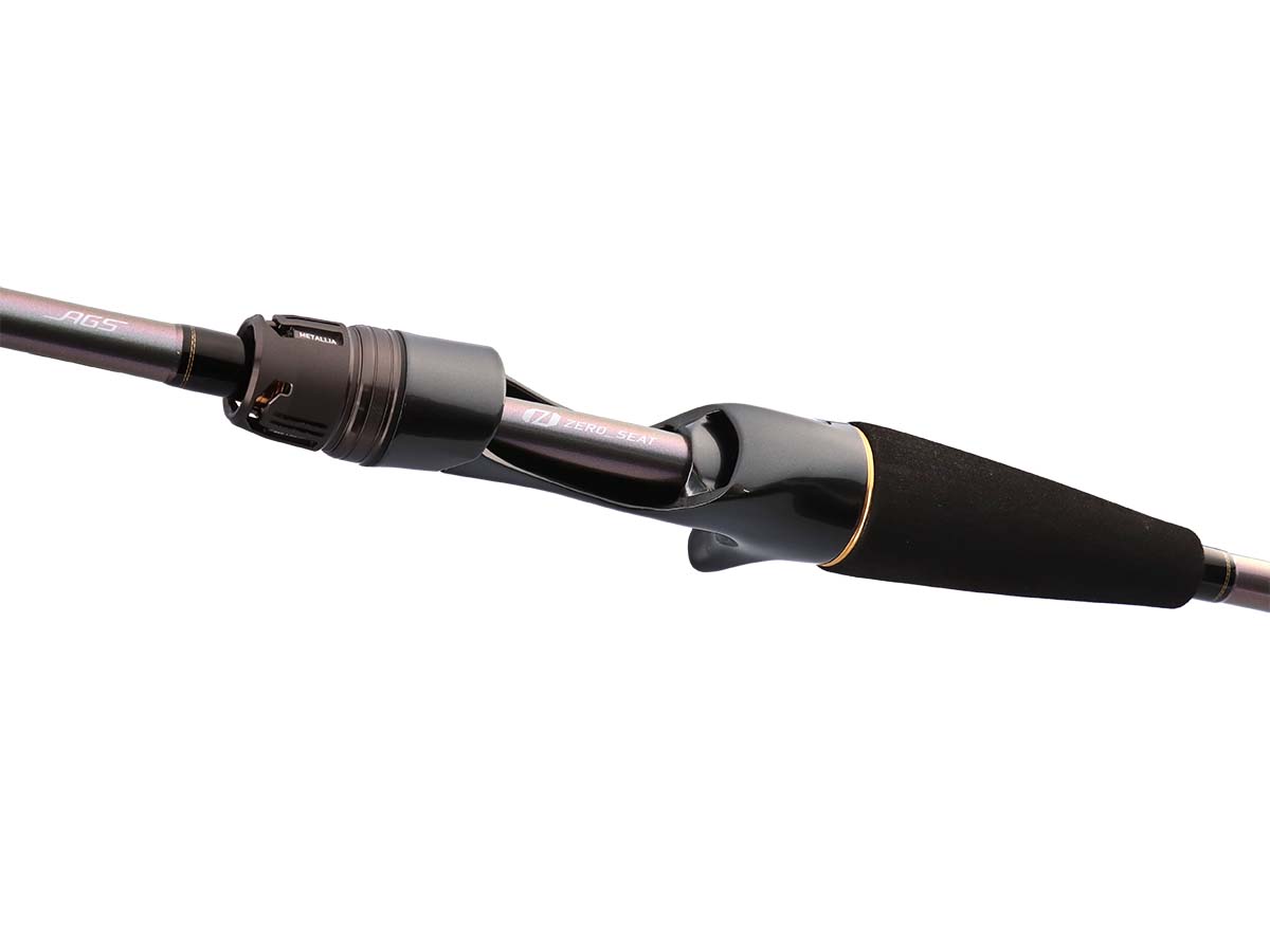 軽量・高感度を実現するAGS(エアガイドシステム)はカーボンフレームを採用しており、チタンと比較して約3倍の剛性をもつカーボンの特性から、ラインを通して伝わるわずかな信号を吸収することなくダイレクトにブランクに伝える高感度を有します。また、カーボンの軽量性によりロッド全体の軽量化にも貢献し、特に穂先部の軽量化につながることで感度の向上にも追加の効果が見込めます。
