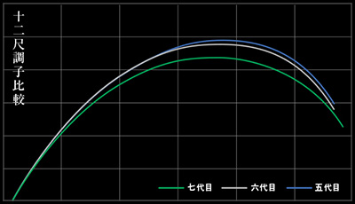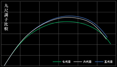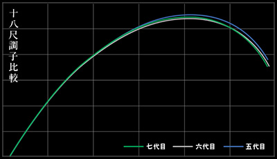 五代目六代目の枯法師14尺は、それまでの5継を4継にすることで節を長くし、しなやかさを表現した。七代目においても、そのバランスを踏襲しつつ、継部に採用された『V-ジョイントα』により粘り強さが強調されている。