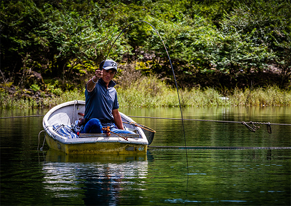 七代目短尺は手首の小さな動きに穂先が敏感に反応し、大きな弧を描いて手元から曲がる安心感あるバランスを実現することで、カーボン素材でありながら和竿のような雰囲気をもたらした。1枚とのやり取りを楽しめる一方、取り込みの早さ、ハリスへのやさしさから競技でも重用される2面性を持つ、それが七代目枯法師の短尺である。