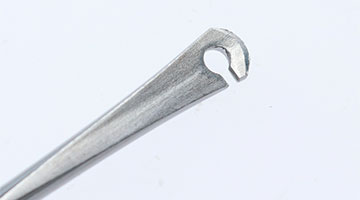 手になじみやすいエラストマ樹脂に3ヶ所のボス加工ですばやい針外しが可能