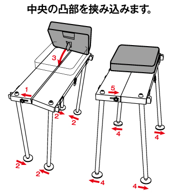 2.釣り台の足を矢印の方向(内側)へ移動します。