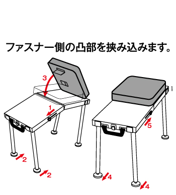 ※安全な場所で始めに釣り台を組み立てます。組み立てた後にGINKAKU座布団を取り付けてください。