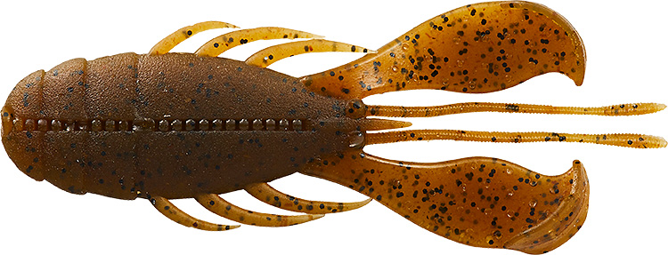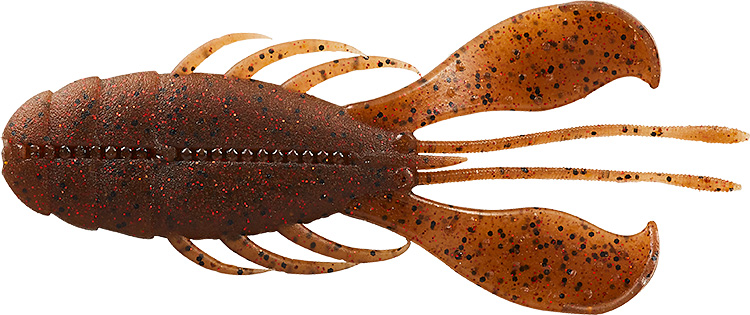 逆刺ししてバックスライド、ノーマル刺しでフリーリグなどに使える多彩に使えるクローワーム。オカッパリでは荷物を極力減らして機動力を上げたいことが多く、多彩に使えるワームは様々な状況に対応できることから、頼りになる。ノーシンカー/フリーリグ/ジグトレーラーなど、使い方を選ばない。