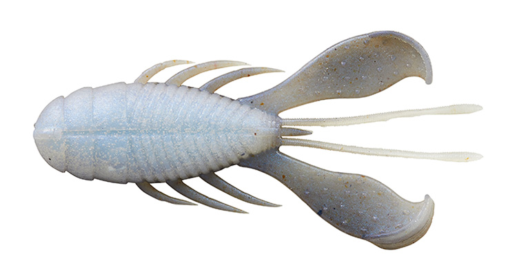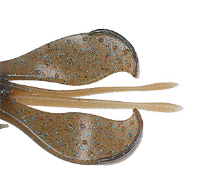 端が直角に立ち上がった爪は水流を受け、レスポンス良くアクションする。特にフリーリグでは、フォール時にはバタバタとアクションし、シンカー着底後、水平に近い姿勢に移行。そこからゆっくりスライドしていく。
