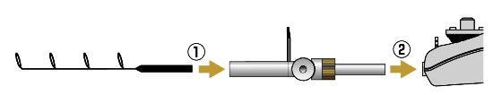 本体中央の金属ネジを緩めて穂先の角度を決め、しっかり締め込む。釣りの最中に緩む可能性もあるため、時々確認する。また、穂先やリール本体に差し込んでいる部分も同様に緩みがないかどうか確認。