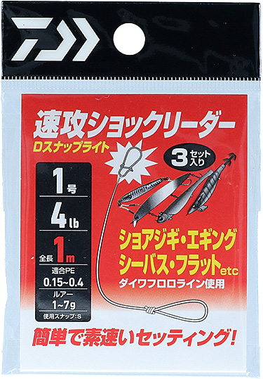 速攻ショックリーダーDスナップライト4号/16lb | L(スナップ) | 4号(16lb) | 3 | 50 | 10~30 | 0.8~1.2(PE) | 340 | 4550133143403 |