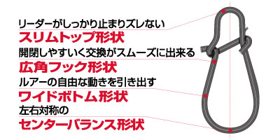 スナップはルアーの自由な動きを損なわないワイドボトム形状のDスナップライトを採用。