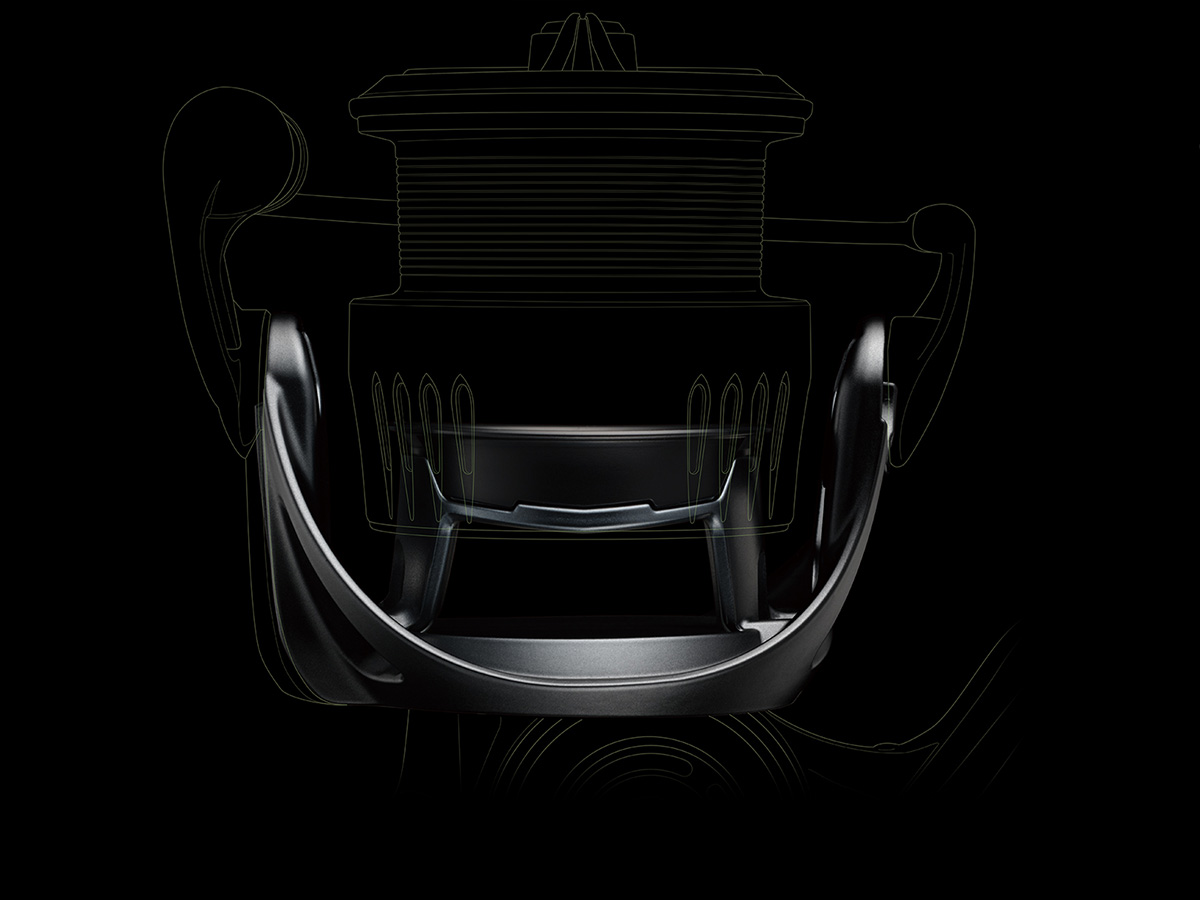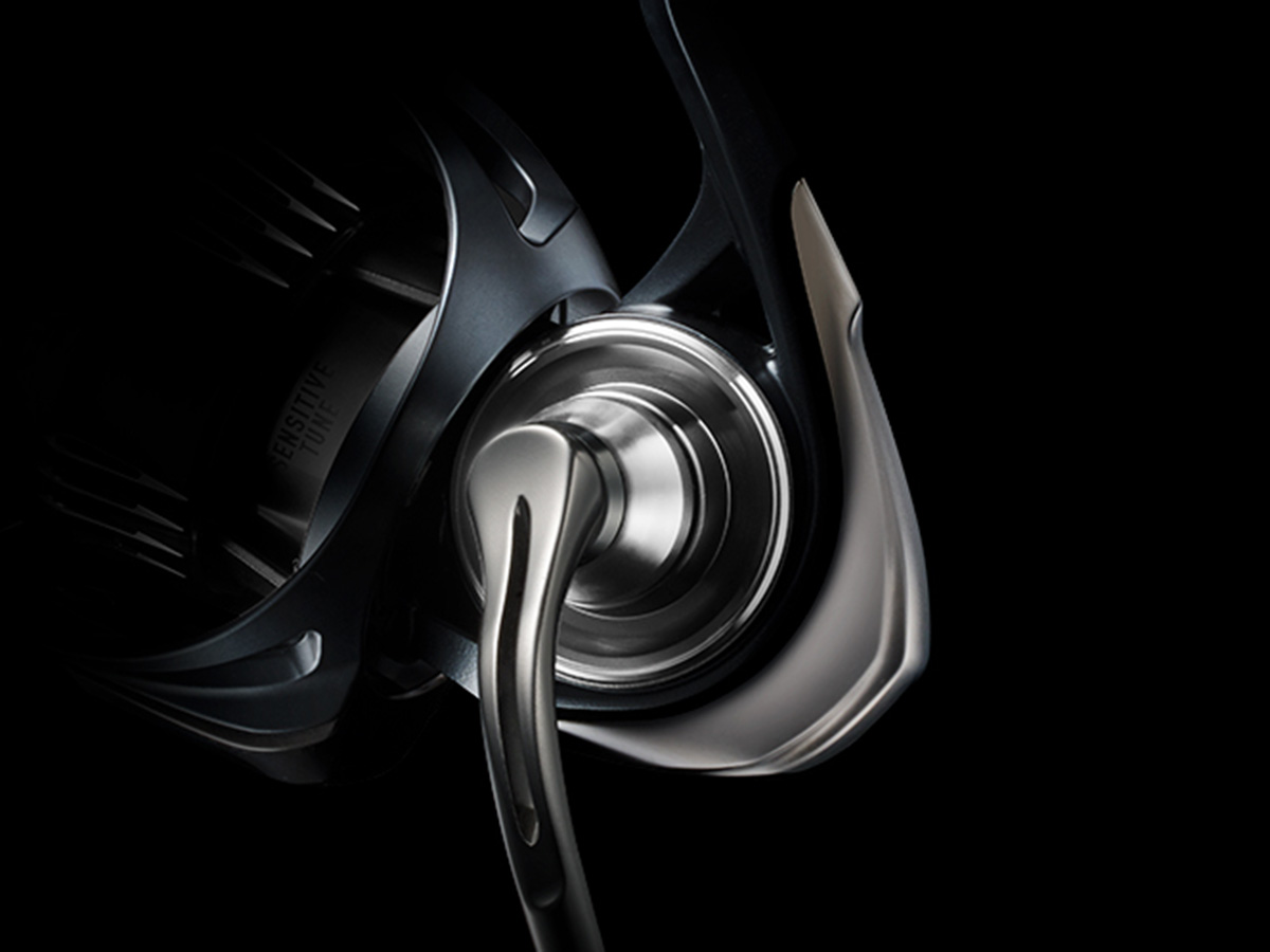 DAIWAが取り組み続ける、スピニングリールのローターの回転レスポンスの向上。DAIWAは、独自の理論より、球体からそのまま切り出したかのような新形状を導き出した。そこからさらに不要な肉を徹底的に削ぎ落すことで、剛性を維持したまま、大幅な軽量化に成功。これにより、操作性、感度の向上に繋がる巻き出しの軽さが飛躍的に向上した。