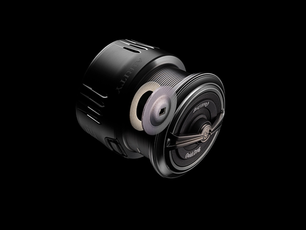 綿密な強度計算のもと、不要な肉を徹底的に削ぎ落し、軽量化を突き詰めた薄肉設計。糸巻部、スプールスカート部の薄肉設計はもとより、スプール内部の肉抜きに至るまで一切の妥協を許さない。スプールが軽量となることで、巻き出しの軽さやキャスト動作などの操作性が向上。さらに作動抵抗の少ないドラグ発音機構を新たに開発。ドラグ作動時のレスポンス向上を実現した。