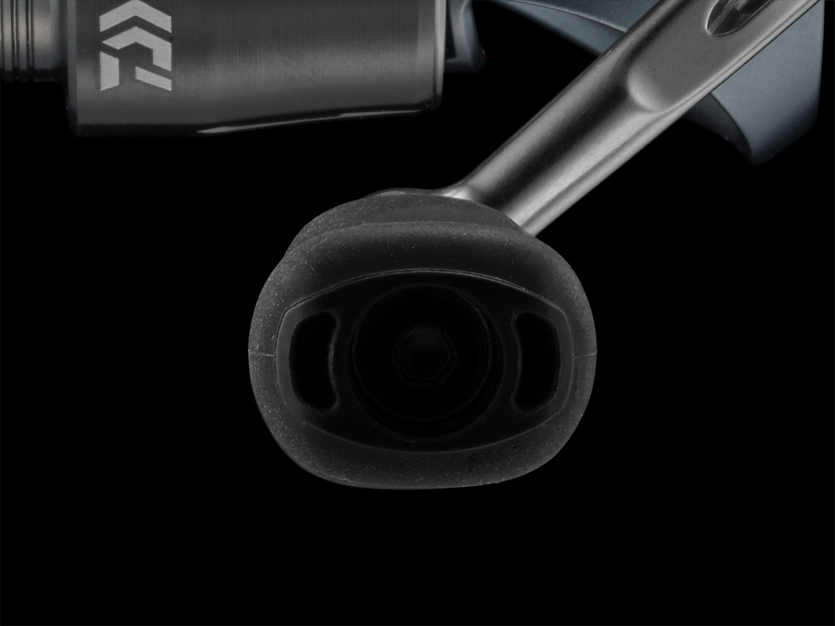 長年にわたり、DAIWAのスピニングリールに搭載されるエアベールは、軽量性と剛性をもたらす中空パイプ構造を採用。かつ、独自の形状によってラインがラインローラーへとスムーズに誘導され、トラブルレスな巻き出しを可能としていた。エアドライブベールは、さらなる軽量化を実現するべく、必要強度を維持しながら、細径化。また、ラインがベールからラインローラーへと、よりスムーズに移行可能な最適なベール角度に傾斜セッティング。エアドライブローターの性能を下支えするとともに、さらに軽量でトラブルレスになった。