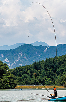 28~32尺 | 未知の棚、沖のポイントを積極的に攻略するために開発された実践的な超長尺アイテム。特に「HERA R」では32尺というアイテムを開発。今まで探れなかった深さ、沖の未知の領域へと誘う画期的なアイテム。超長尺は軽さだけでなく、耐久性を含めた強度面も重要なファクター。鮎竿で培ったダイワ独自のカーボンテクノロジーと株理論設計で、片手での送り込み、回し振りも可能にした当に”使える超長尺”。 |