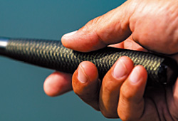 新触感へらグリップ:巻糸による立体感と濡れても滑りにくい塗装を組み合わせることで実現した、ソフトでしっかり握れるグリップ