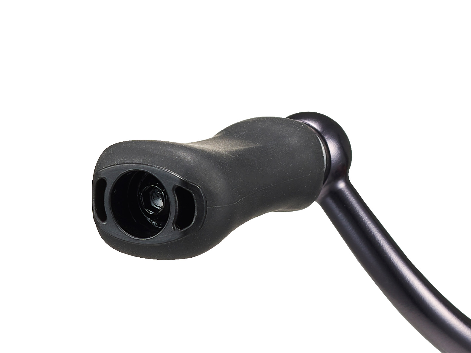 ハイグリップ仕様で、小型軽量ながらもしっかりとしたグリップ性能と握り易さを確保。軽量化を追求し、一体型ノブキャップ構造を採用。