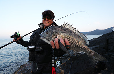 「開発のコンセプトは、釣り味を存分に味わえる竿です。柔軟かつ粘りに富み、黒鯛(チヌ)の引きを余すことなく楽しめる調子を目指しました」