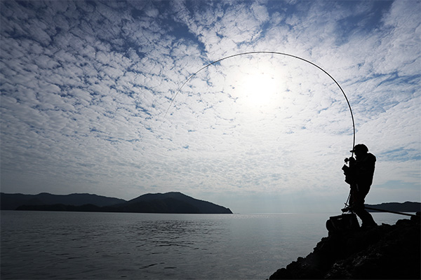 僕の地元、九州エリアでもPEライン遠投釣法はスタンダードになっています。そんな仕掛けを扱うのに理想的な竿は曲げこんだ時の安心感があること。銀狼唯牙はまさにラインの強度を高めてくれるようなクッション性を実現しています。シリーズで最も柔軟な00号~0号はタフコンディション時に繊細な仕掛けを扱うのも良し、一尾をじっくり楽しみながら獲りたいシチュエーションにも最適です。僕の感覚的なところですが、チヌの場合、根が荒い場所で掛けても、余計な反発力が無い竿であれば高確率で獲れます。そんな竿曲がりの伸びしろに安心感のある竿を形にしたのが今回の銀狼唯牙ですね。