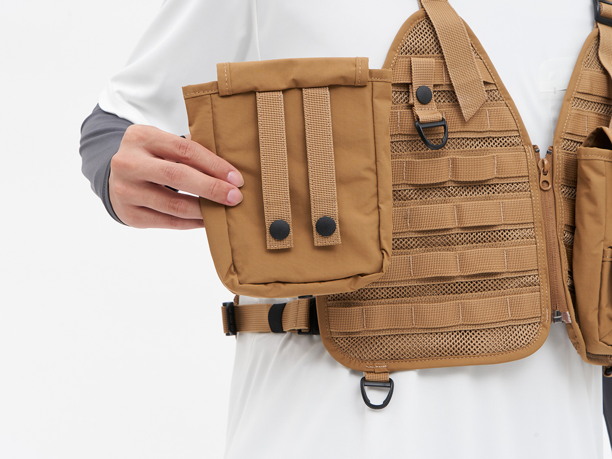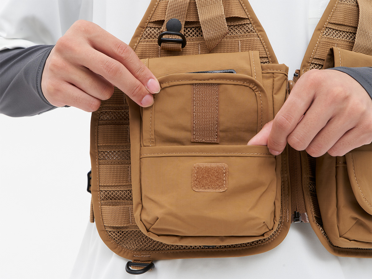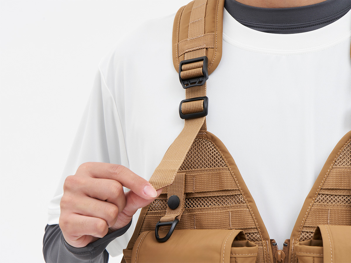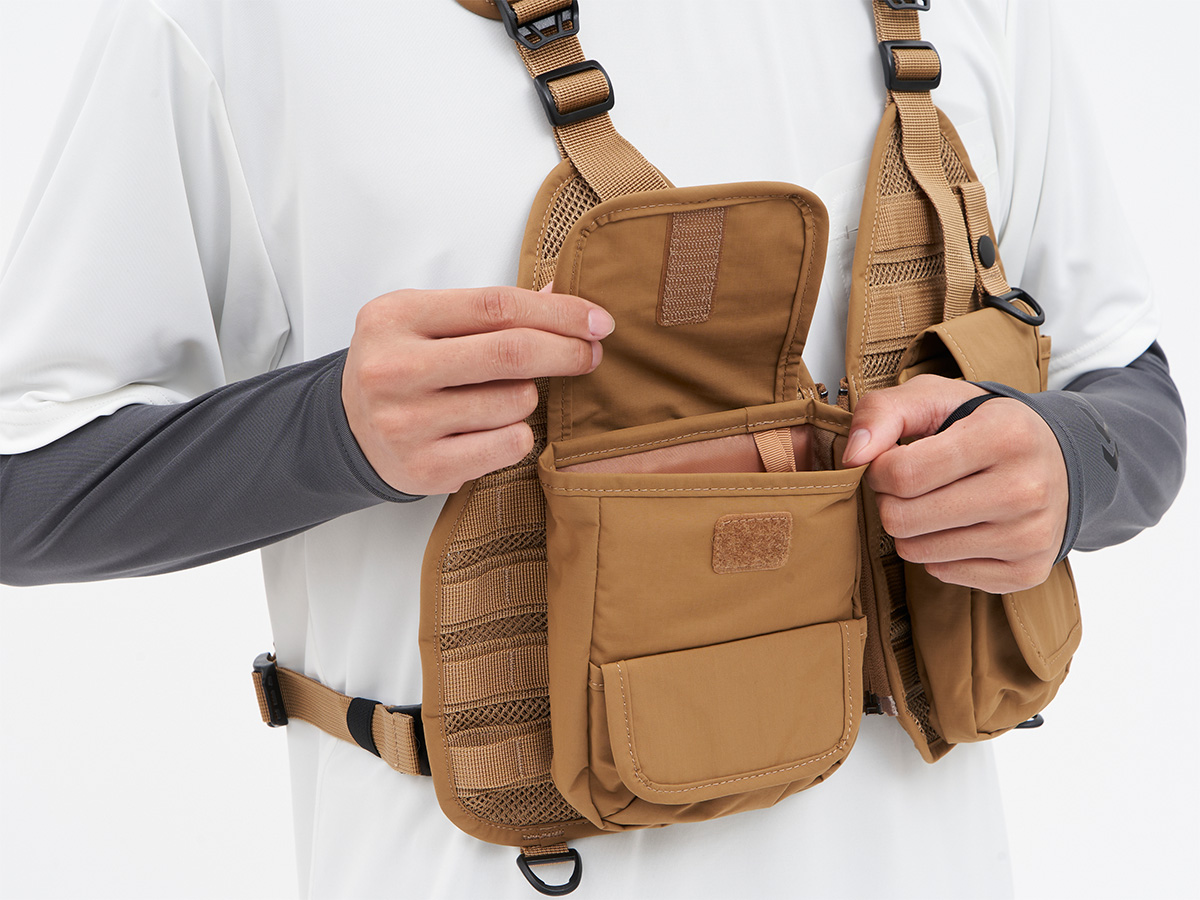 収納量に合わせてスタイルを変更可能なフィッシングベスト