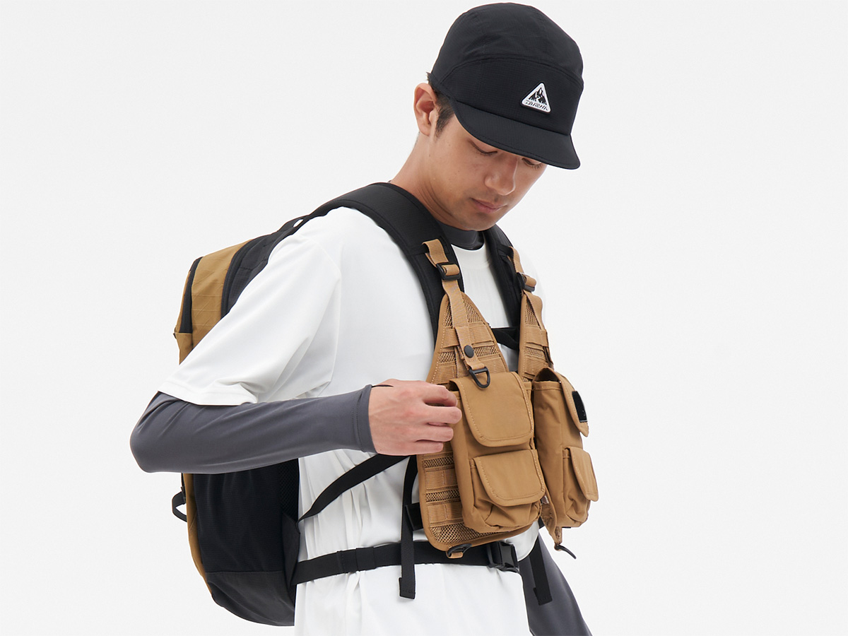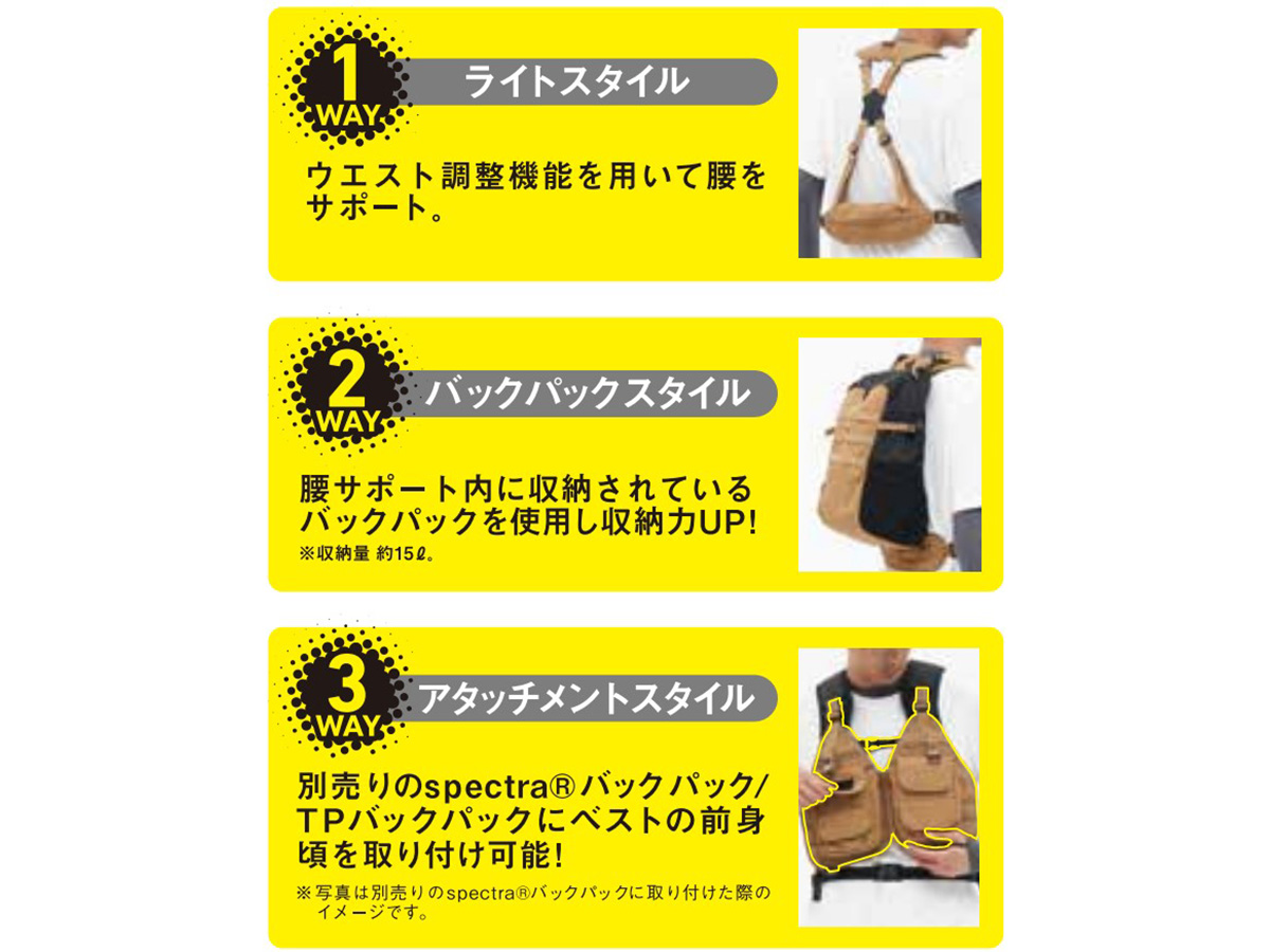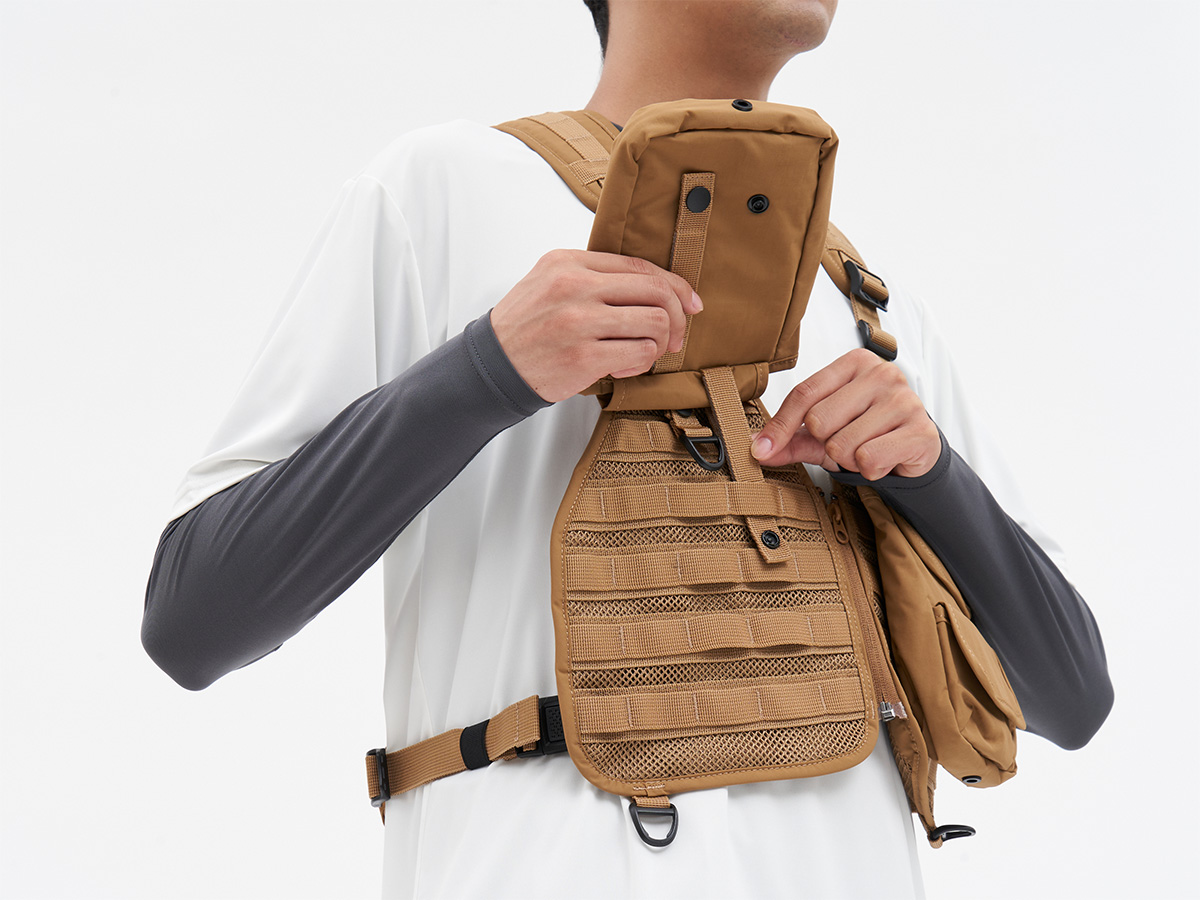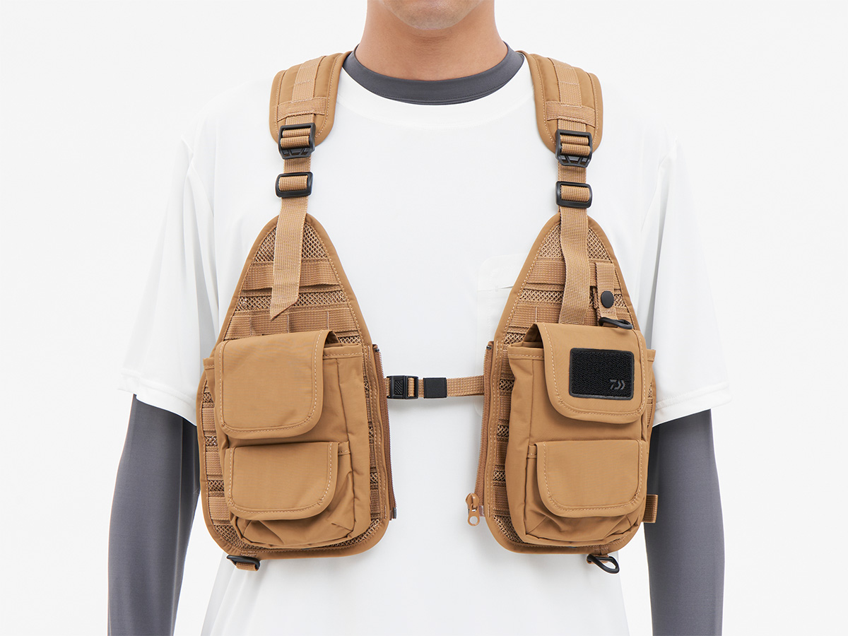 収納量に合わせてスタイルを変更可能なフィッシングベスト