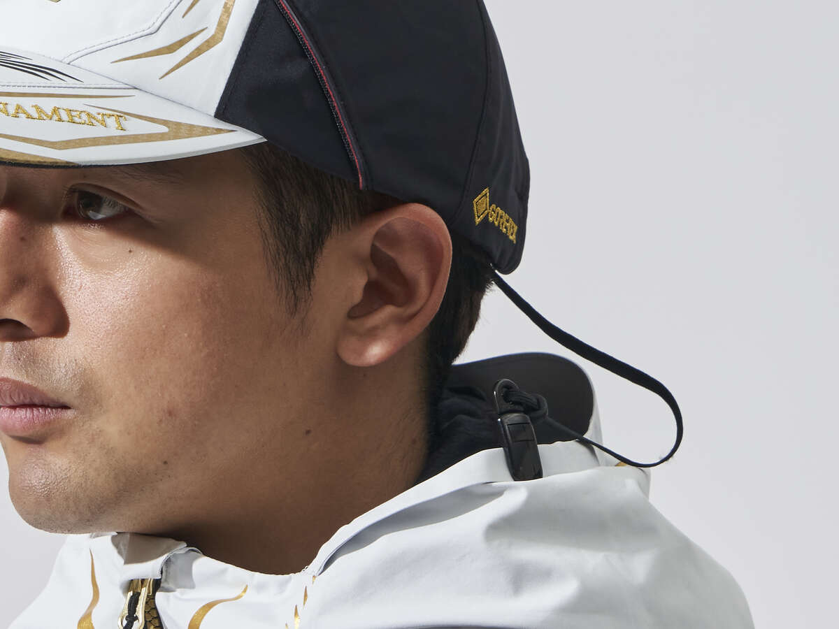 ツバには、特定のレインウェアと結合できるキャップインシステムを搭載し、レインウェアのフード着用時もしっかりとフィットし視界を確保する。水面からの光の反射を抑えるため、ツバ裏ブラック仕様。