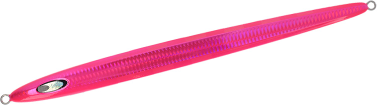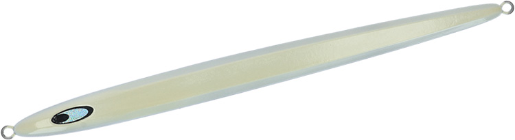 中深海におけるスロージギングシーンにおいて、特に強烈な水圧とその中で安定したジャークを繰り出す為には、アングラーの負荷を出来るだけ抑えたいという要望をうけて開発。セミロングタイプの形状に加え、スーパーディープを意識したことから、水を受ける先端部分の形状を半球状にし造波抵抗を軽減した、バルバスバウ理論搭載の入魂の逸品。さらに安定したジャーク&フォールを繰り出す為に細部にわたり細かい削り込みをフィールドで施し、同船したスロージギングの名手をもうならせたことも付けさせていただきたい。