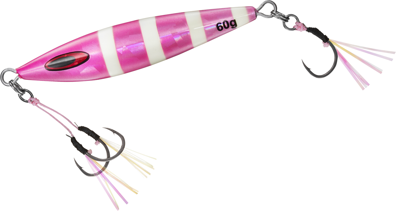 ソルティガFKジグSLJ80g CHピンクゼブラグロー | 109 | 80 | SLJ用フォールキラー | 鉛 | フロント:ティンセル付きツイン__リア:ティンセル付きシングルイセアマ#14 | 1,650 | 4550133549540 |